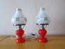 Imitace petrolejové lampy. Lampy jsou na el. Jsou z mléčného skla. Cena za obě lampy 750 Kč.