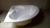 Rohová akrylátová vana 140 cm nepoužitá, umyvadlo s baterií a se skříňkou š. 65 cm ( možný prodej jednotlivě).