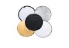 Kruhová odrazná deska 5 v 1 má průměr 60cm . Obsahuje zlatou, stříbrnou a bílou odraznou plochu, černou plochu a bílý difuzér. Deska je dodávána složená v černém přepravním pouzdře.