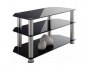 Velmi kvalitní TV stolek Schnepel AS 80 P z Holandska, desky z černého skla a stříbrné nohy, rozměry ve fotografii. 1.800 Kč.