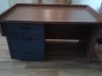 Nízký stolek se 3 šuplíky, vhodný pod TV, lamino. Barva tmavší hnědá, čela šuplíků modré. Obdélníkový půdorys, vnější rozměry horní desky 80x45 cm, obroubení ca. 3 cm nad desku. Výška vč. obruby 47 cm, výška samotné desky 44 cm. Šíře šuplíků 26cm, výška šuplíků 10cm, 14 cm, 14 cm. Lehké vysouvání. Vnitřní volný prostor 42x42 cm. Zadní deska. Velmi zachovalý, bez poškození, masivní. Možné použít jako TV stolek, skřínka pod květiny, původně pracovní stolek pro předškoláka. Za 400 Kč.