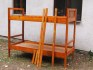 Poctivou českou palandu (25 let starou). Je vyrobená jako rozebírací a snadno stěhovatelná v osobním autě. Dětem sloužila do 15ti let, hodně toho tedy vydrží (neviklá se, je mimořádně stabilní). Místo roštů má dvě desky z dospěláckých válend. Vybavená je v horním patře zábradlím ze tří stran a žebříkem pro velmi snadný vstup na horní postel. Rozm. - vnější (V: 158, D: 194, Š: 84); výška horního zábradlí: 25; rozměr lůžek: 187x78cm; spodní postel je 42 a horní 135cm nad zemí. 1.600 Kč.