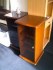 Pojízdná vitrina se skleněnými dvířky z kouřového skla. Rozměry: v. 80cm, š. 39cm, h. 39cm, II. jakost. 2.900 Kč.