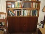 Knihovna je z poloviny prosklená, šíře cca 150 cm, tmavý ořech. Možno dodat včetně knih.