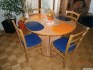 Jídelní set 4+1, dekor olše, polstrování na židlích v tmavě modré barvě. Stůl je kulatý o průměru110 cm, výška 75 cm, s možností rozložení pomocí vkládky. 4x židle o rozměru hloubka sedáku 37 cm, šířka sedáku 39 cm, celková výše židle 86 cm. Perfektní stav, stabilní a pohodlné posezení. Vhodné do bytu i na chalupu. Osobní odběr Praha 10 – Malešice. Cena za komplet - 2.000 Kč.