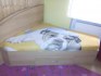 Rohovou postel dělanou na zakázku, perfektní...šuplík slouží jako úložný prostor, včetně matrace. Rozměr - š. 165cm, délka 180cm, dvě čela - jedno sundané kvůli toopení, malá chybička v dolní části postele - odloupnutá dýha. PC byla vysoká, nyní 3.500 Kč.
