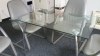 Skleněný stůl š 70cm d 110cm v 74 cm, deska mírně opotřebená cena 200, -kč a 4 koženková křesílka s područkyymi ve skvělém stavu 50, - kč/ks. Původní vybavení kanceláře.