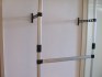 Nastavitelný hliníkový stojan na šaty, na ramínka s oděvy. Není volně stojící, šroubuje se ke stěně. Má tři vodorovné tyče, které lze umístit do libovolné výšky. Výška: libovolná díky stavebnicovému systému , šířka: nastavitelná, 57,5 - 96cm , hloubka: 28cm. 500 Kč.