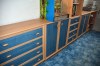 Velmi zachovalou stěnu nábytku. Nižší skříně mají výšku 90cm. (1x široké šuplíky,2x skříně,1x police). Vyšší kus nábytku má výšku 2m. Hloubka nábytku - 37cm. V případě zájmu mohu přidat do kompletu pc stůl ve stejně dobrém stavu. Praha 4.