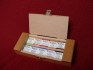Mistrovské akvarelové barvy UMTON české výroby v dřevěném penálu. Barvy určené pro profesionální malíře. Jjejich kvalita je srovnatelná s olejovými barvami předních evropských firem. Jsou vyrobeny z prvotřídních, jemně mletých pigmentů a pojeny speciálními emulsemi, jejichž nejpodstatnější složkou je nejsvětlejší druh arabské gumy a další základní homogenizační a stabilizační komponenty, které jsou součástí receptur výrobce.