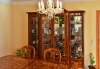 Jídelní sestavy s rozkládacím stolem až pro 10 osob se 6 židlemi a prosklenou, osvětlenou komodou. Ověskový lustr jako doplněk. Velmi málo používané - 100% stav, bez jediného povrchového defektu. Lakovaná dýha povrch. Velmi reprezentativní do stylového prostředí.