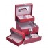 Prodám úplně novou a nepoužitou šperkovnici, potaženou červenou imitací kůže. Dohromady 3 patra na Vaše šperky. Navíc vyjímatelná cestovní šperkovnice.