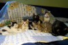 Evropská kočka domácí. Tři kočičí holčičky a jeden chlapeček se nar. v 7/2015 nesmírně hodné mamince v domácím depozitu PSOZ. O týden později zachránil před utopením jeden pan hasič poblíž Klecan dvě asi dvoud. kočičí miminka - chlapečky. Hledali jsme k nim kojící kočičku a vzpomněli jsme si, že tahle mamina má čtyři koťátka a že by tedy snad dvě další ještě mohla odkojit. Kočička byla zlatá a hned se koťátek ujala a tak nyní, po zhruba dvou měsících hledáme nový domov.