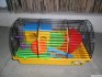 Použitou klec pro křečky. Stav je dobrý. Obsah: domeček, pítko, kolotoč, patro , miska. 349 Kč.