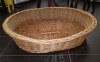 Velký proutěný oválný koš pro psa, používaný jen chvíli. Vyroben z kvalitního přírodního proutí se zesíleným okrajem a se sníženým vstupem. Rozměr 110 cm x 85 cm, výška 26 cm (dno 90x70 cm). 600 Kč.