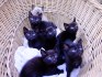 Evropská kočka domácí - darujeme koťátko (koťátka) narozená o letošních čarodějnicích. Jsou všechna černá, některá úplně, některá s bílou náprsenkou, holky i kluci. Jsou zvyklá na konzervu i granule, umí chodit na písek. k odběru koncem měsíce. Místo-Praha Suchdol. Pouze do dobrých rukou (jak jinak). Bílé je zadané.