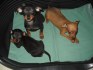 Německý pinč - štěňátka 9 týdnů stará, k odběru v Praze 9 Černý Most. Očkovaná, odčervená, granulky do začátku. Informace na tel. 3.000 Kč.