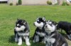 Milující černé a bílé Sibiřský husky štěňata. Jsou to jen 12 týdnů. Všechny hnědá srst s bílou socks.They byli vychováni v rodině s dětmi a jinými domácími mazlíčky kolem nich.